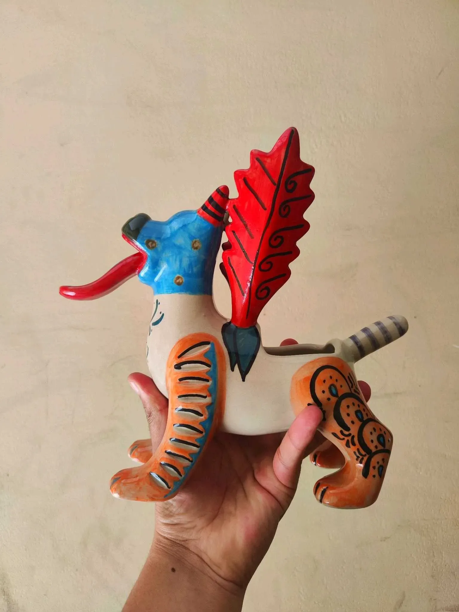 Los alebrijes están inspirados en los nahuales, una leyenda oaxaqueña sobre seres fantásticos que están conformados por diferentes elementos fisionómicos de varios animales. Los artesanos oaxaqueños elaboran los alebrijes a mano con hermosos diseños y patrones en los colores más llamativos en madera...