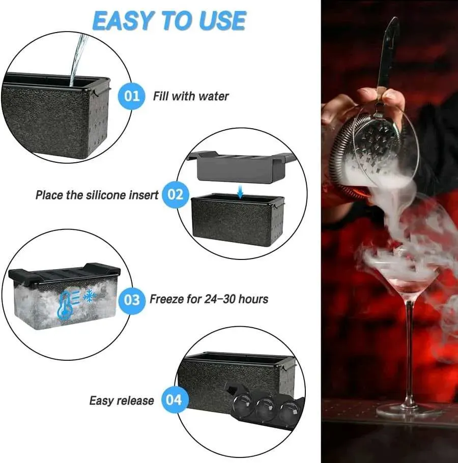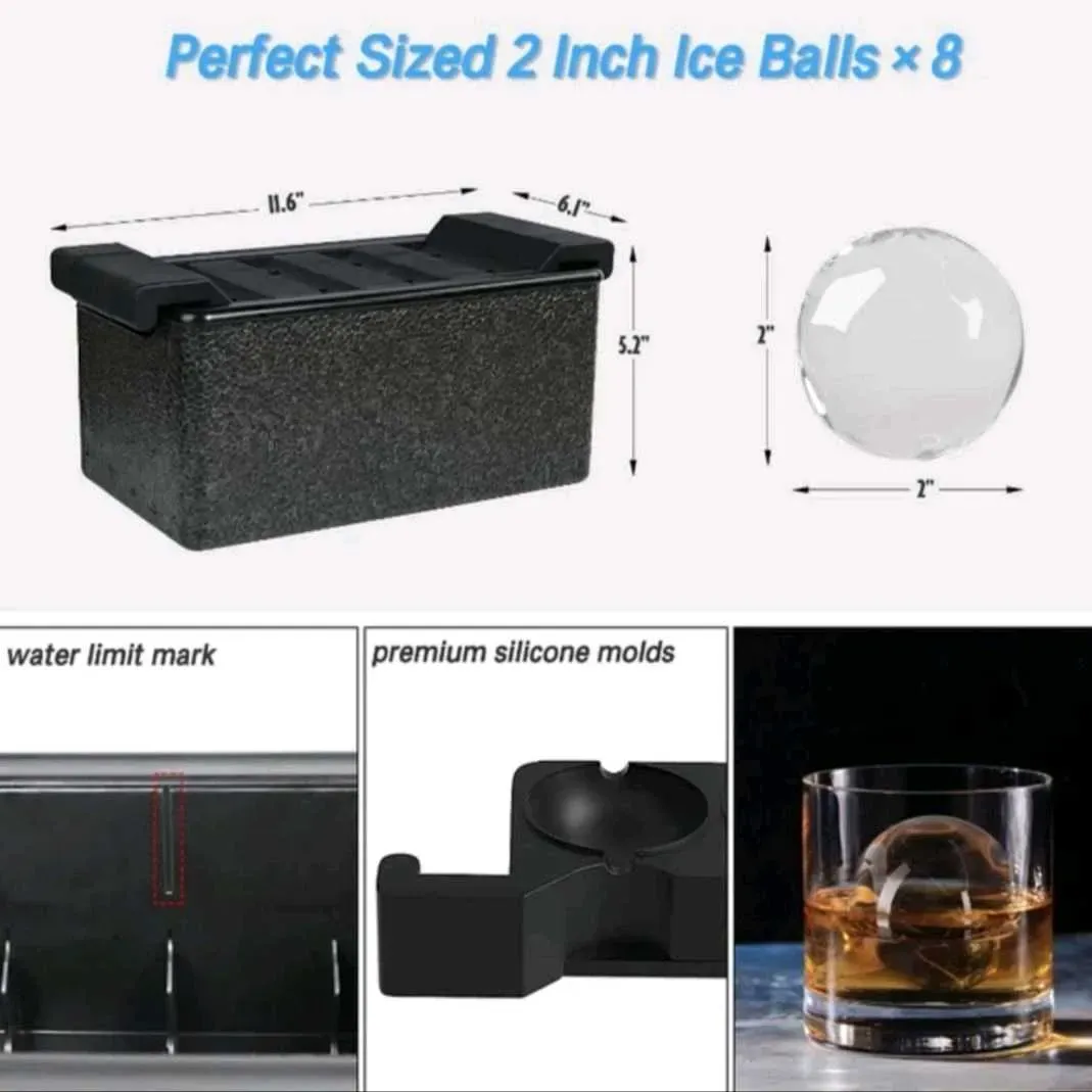 ¡Tu mejor aliado para crear hielos transparentes! Este poderoso molde de hielo te permite hacer 8 esferas cristalinas de 5cm por vez.