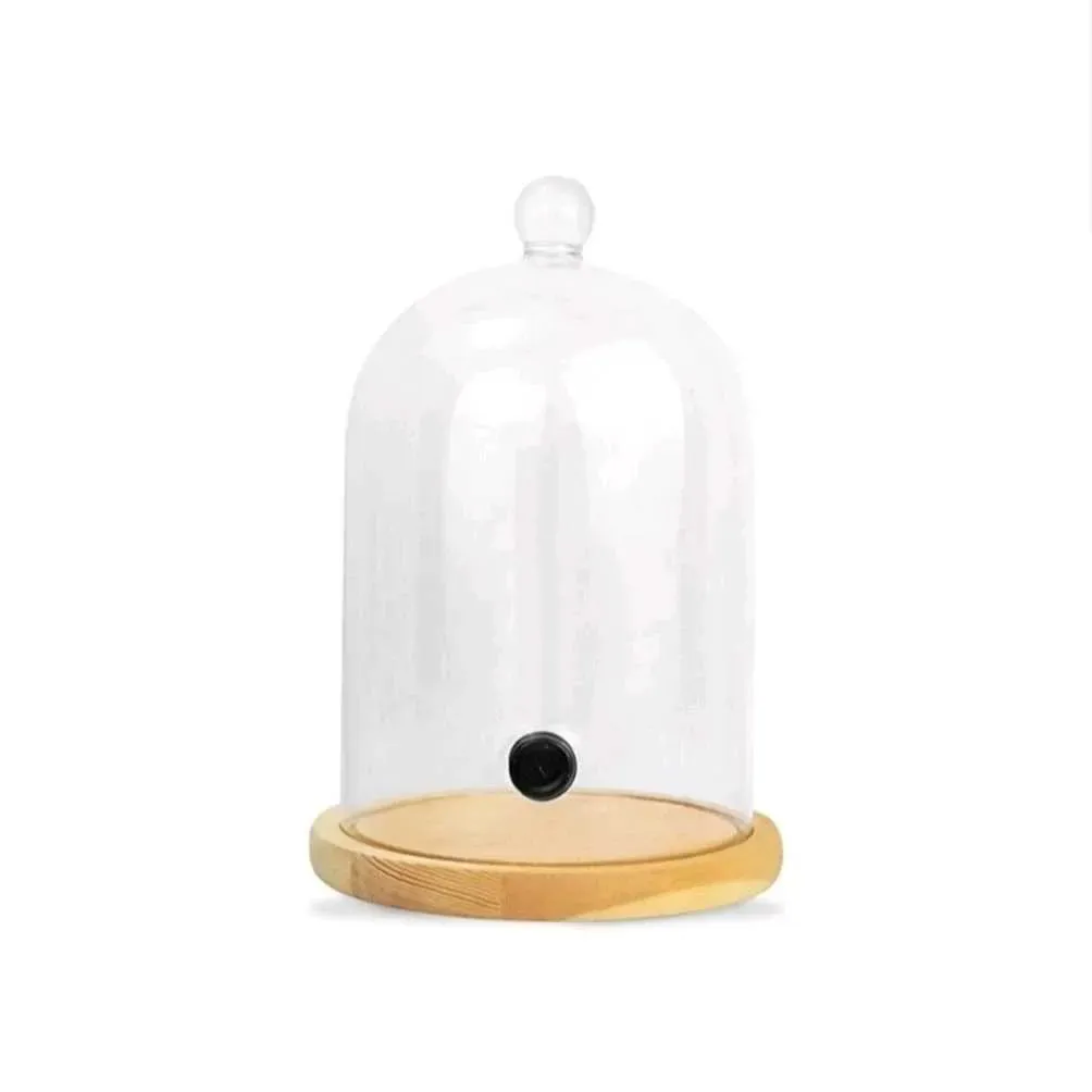 Una cúpula de vidrio transparente con un sujetador en forma de círculo – para que pueda moverla fácilmente.