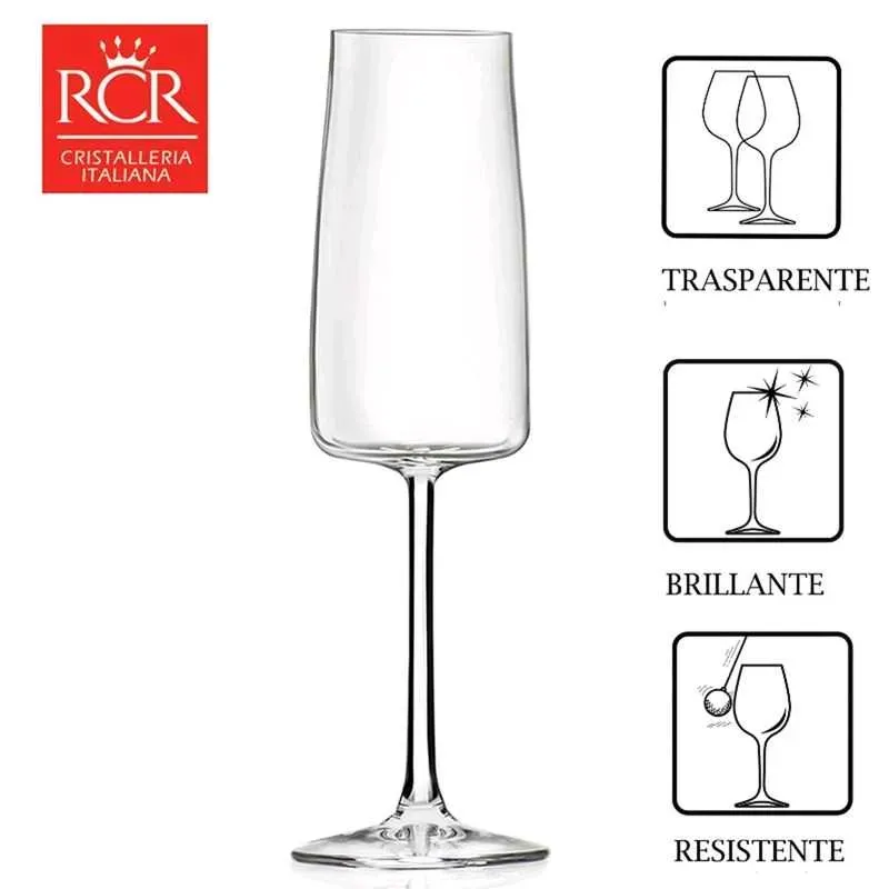 CRISTALERIA ITALIANA RCR nos ofrece este juego de copas Diseñado para una decoración de mesa contemporánea y minimalista, el fondo plano le da al vino una forma trapezoidal, típica de modelos modernos. El refinamiento del diseño expresa su máxima expresión en la leve reapertura de la boca que, ...