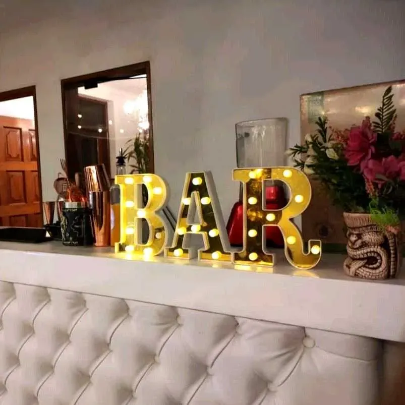 Este set de tres letras con luces en color amarillo le dará una presentación muy top en tus eventos.