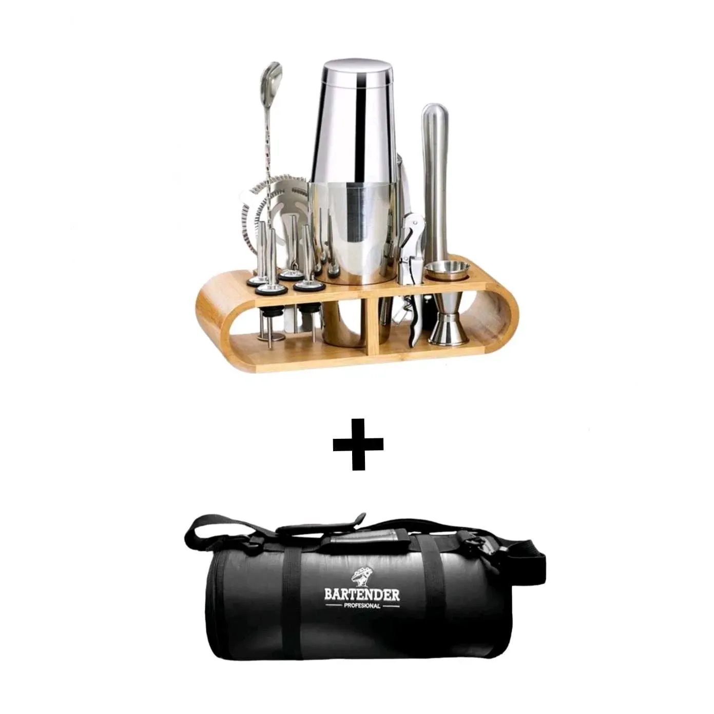 Maletin PRO + Kit Bartender de 12 Pz, Coctelera BOSTON