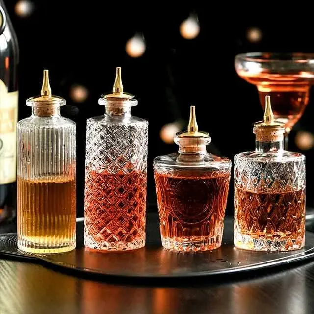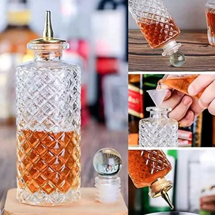 MATERIALES DE CALIDAD - bitero de cristal sin plomo. Botellas con tapas de rosca y tapones. ¡Un artículo imprescindible para cócteles exitosos!.