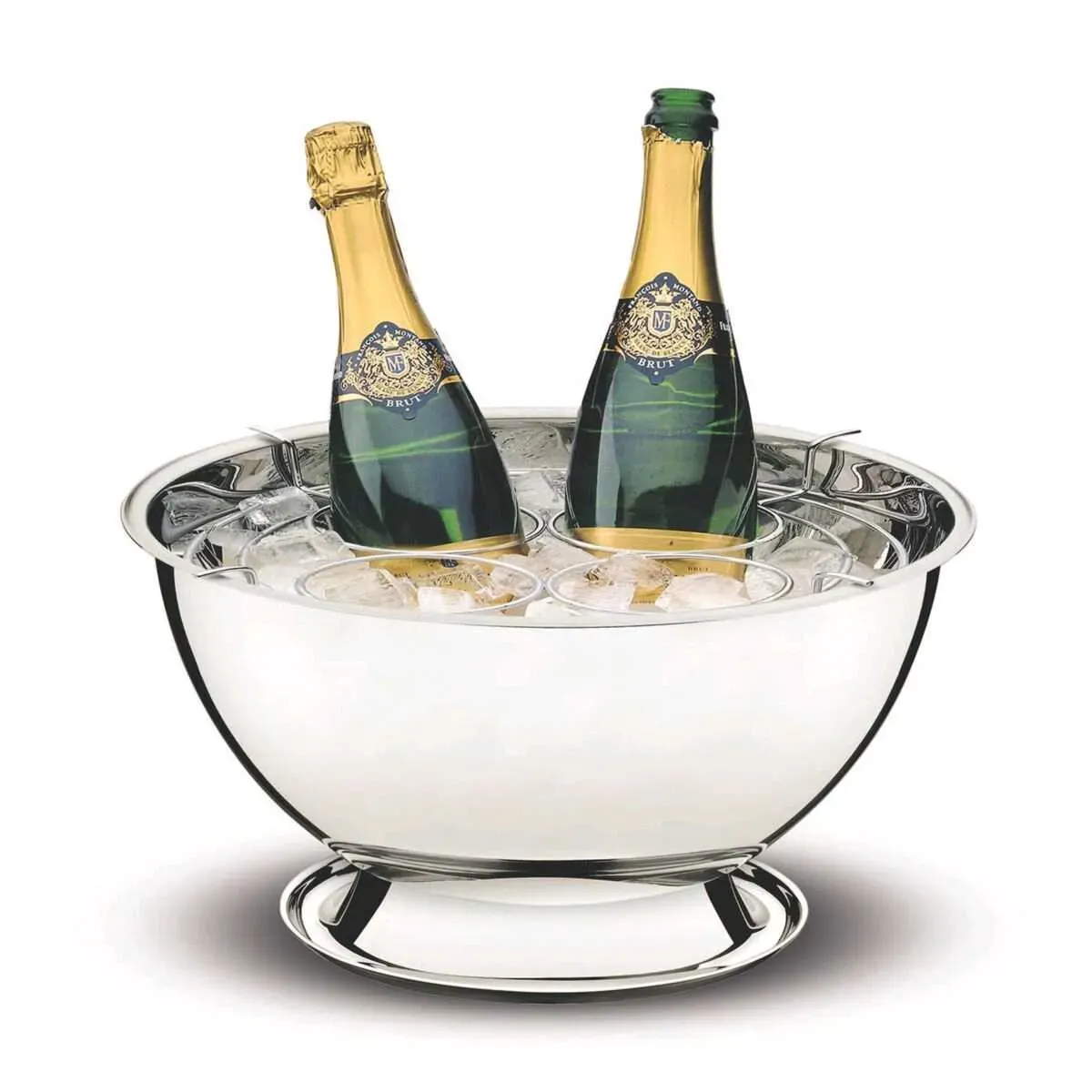 Servir champagne ya es sofisticado, imagine servir en la Champañera Tramontina de acero inoxidable con soporte para 4 botellas de 36 cm de diámetro y 12,4 L de la línea Service. Con terminación brillante y un diseño elegante y práctico, esta pieza es indispensable para dejar el happy hour con los am...