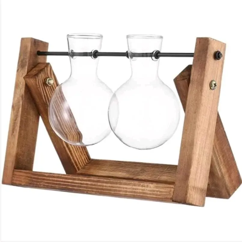 Jarrón Cristal Colgar Cocktail x 2 + Soporte de Madera