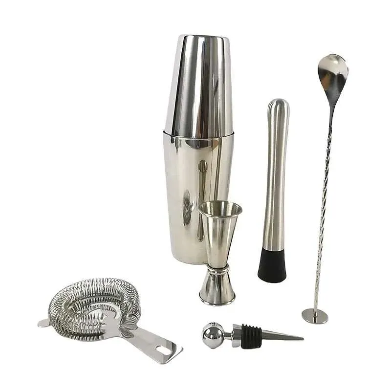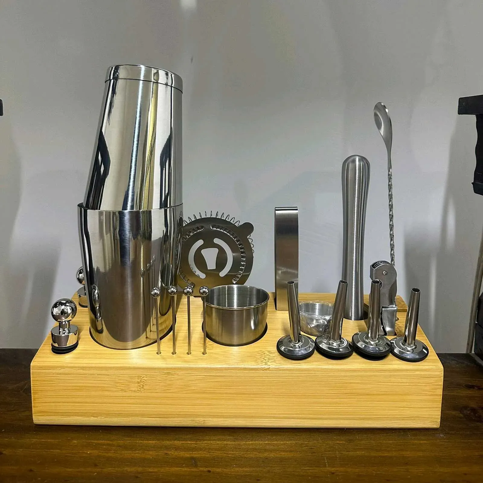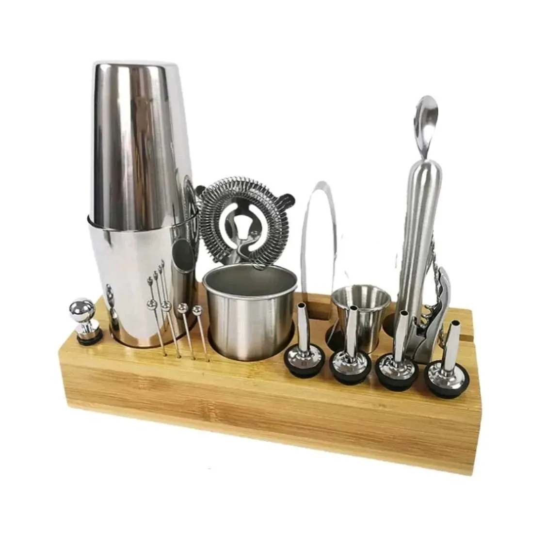 19 piezas de accesorios de bar en acero inoxidableEl juego de coctelera proporciona el kit de barman más básico.