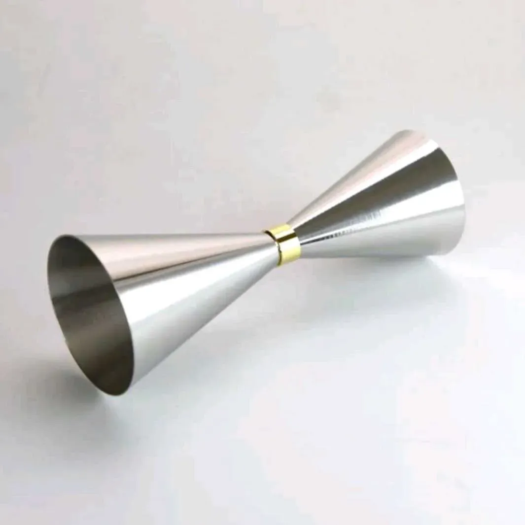 Este jigger lleva muchos años en el mercado japonés y es muy popular entre los cocteleros de ese país. Con vasos de boca ancha para verter y medir fácilmente, este es el medidor más grande que importamos con capacidad de 2 y 3 onzas (y una práctica línea de 1,5 onzas). Todo ceñido con una sexy cintu...