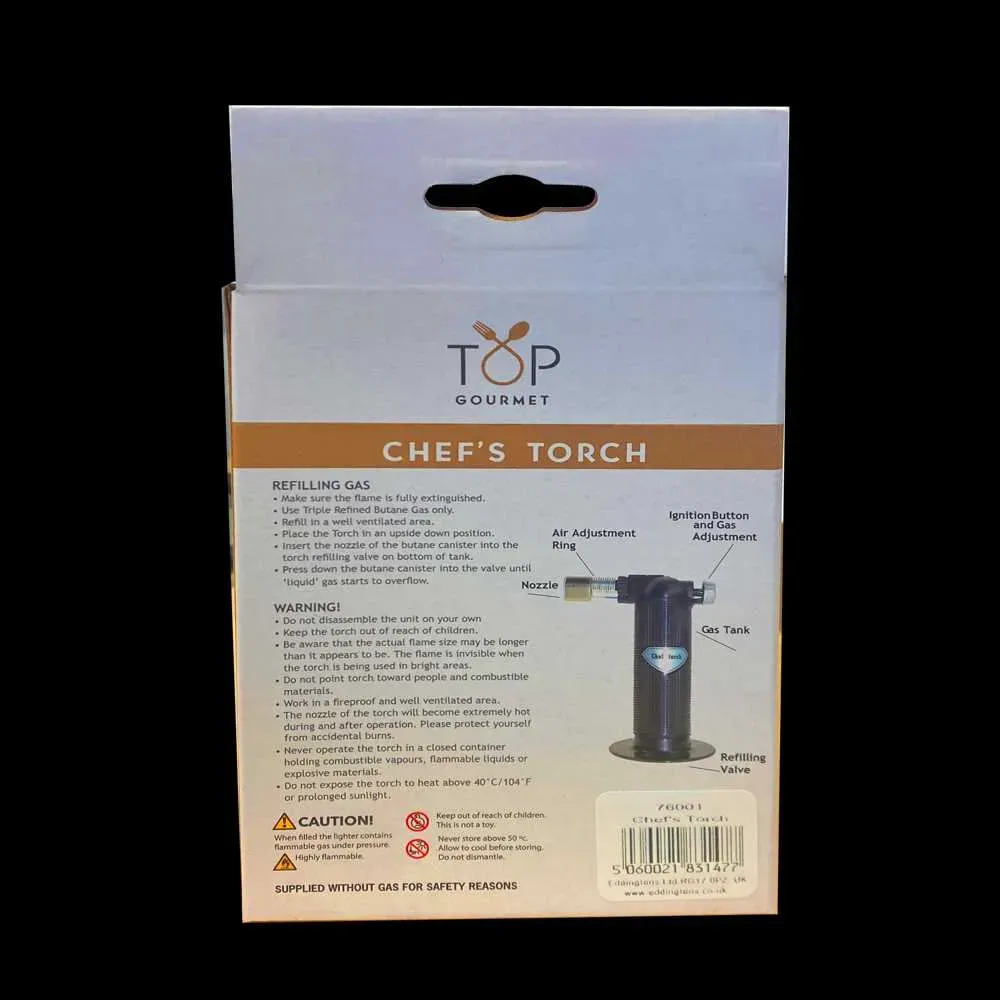 Soplete multiusos para caramelizar crème brûlée, carbonizar pimientos o chiles, y para un acabado profesional de platos. Ajustable y recargable con gas de encendedor estándar.