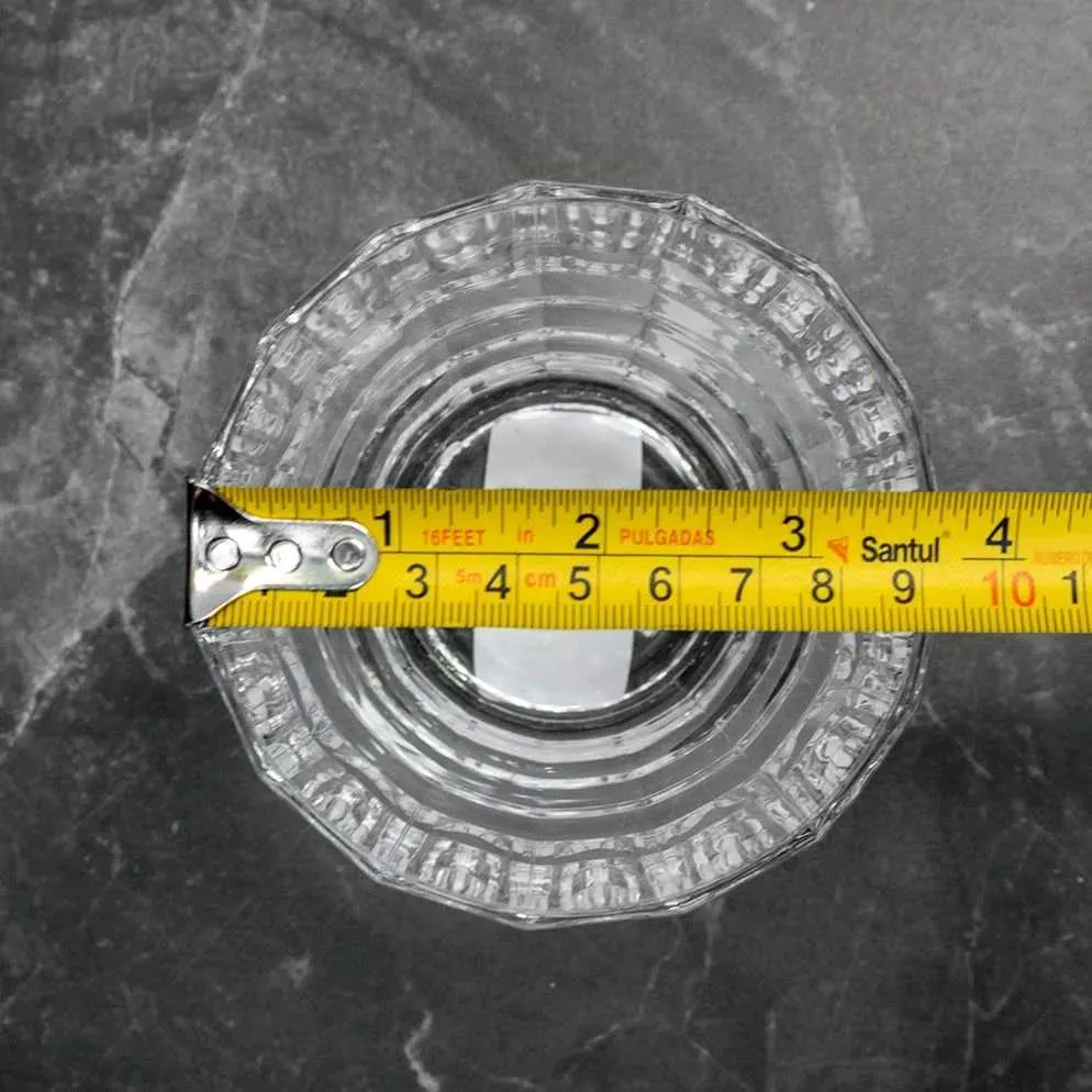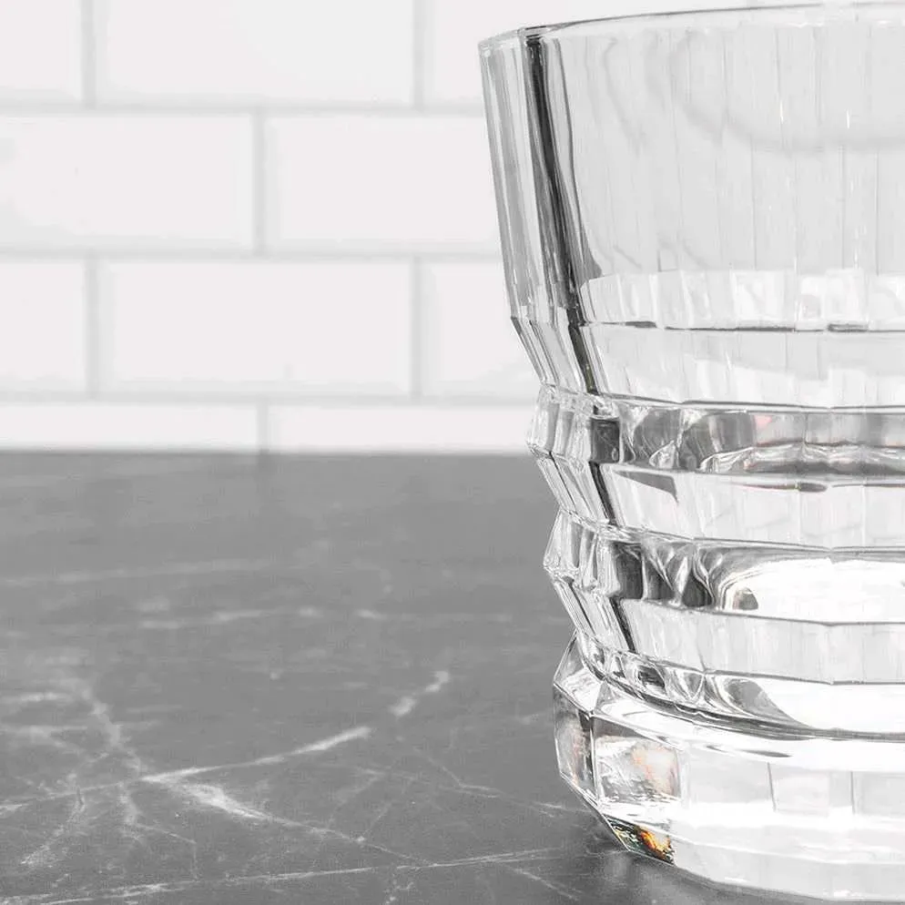 Vasos de cristal tallados con relieve geométrico de diseño elegante.